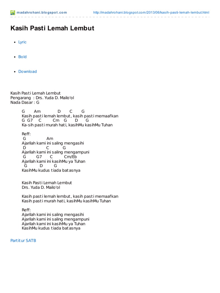 Kasih pasti lemah lembutkasih pasti memaafkankasih pasti murah hatikasih Mu kasih Mu Tuhankasih pasti lemah lembutkasih pasti memaafkankasih pasti murah hat. Ajarilah kami ini saling mengasihi. Lirik Lagu Kasih Pasti Lemah Lembut.